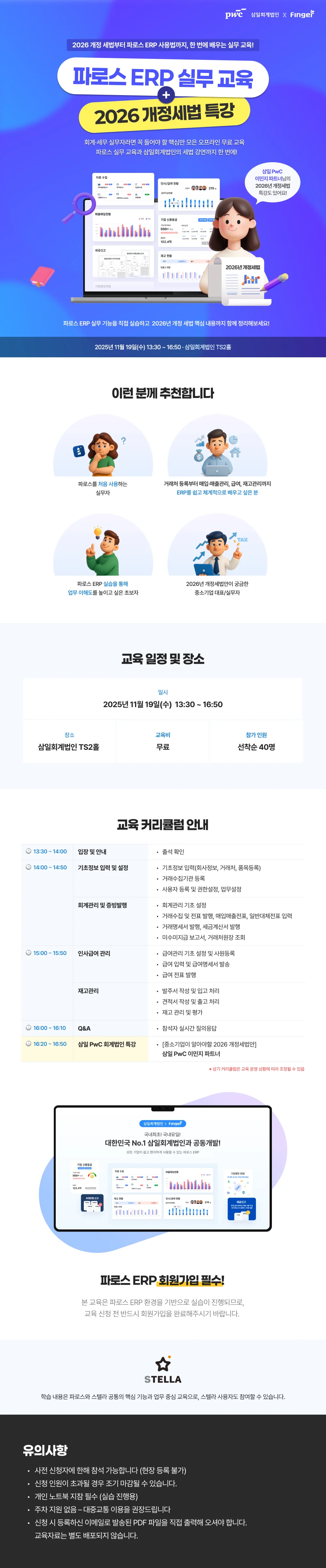📣파로스·스텔라 ERP 실무교육 + 삼일PwC 2026 개정세법 특강
