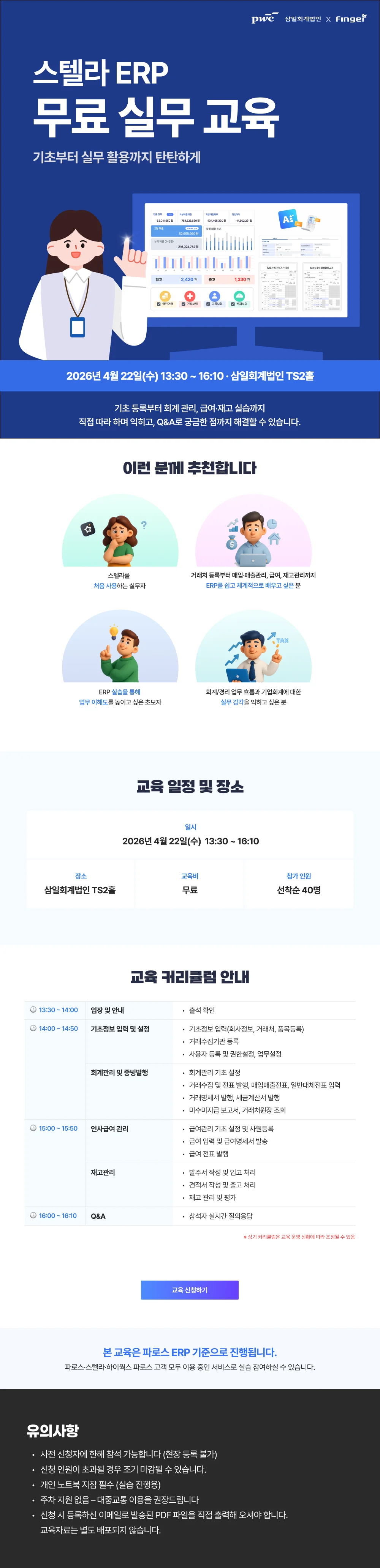 ๋ผ ERP ๋ฌด๋ฃ ์ค๋ฌด ๊ต์ก ๋ชจ์ง! ๊ธฐ์ด๋ถํฐ ํ๊ณ, ๊ธ์ฌ, ์ฌ๊ณ ๊ด๋ฆฌ๊น์ง ์ค์ต ์ค์ฌ์ผ๋ก ๋ฐฐ์ฐ๋ ERP ๊ต์ก. ์ ์ฐฉ์ 40๋ช