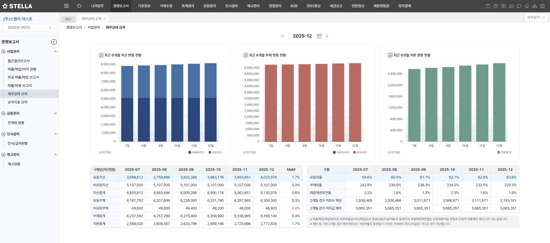 ์คํ ๋ผ ERP โ [๊ฒฝ์๋ณด๊ณ ์] โ [์ฌ์ ๊ด๋ฆฌ] โ [์ฌ๋ฌด์ํ ์์ฝ]